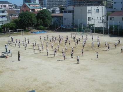 前後左右がしっかり揃い、美しい隊形がとれていました。運動会本番でも、より完成度の高い演技を期待しています。