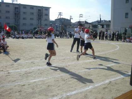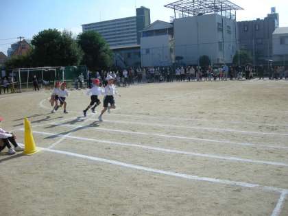 3年生は、全員が全力疾走。「がんばれ〜」の声援の中、ゴールに飛び込んでいきました。