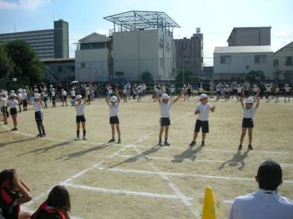 3年生は、一人一人が全体をしっかり意識し、縦横左右が揃った美しい隊形の団体演技でした。