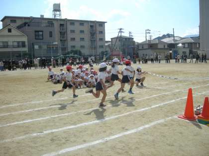 2年生は、全員が全力を出し切りました。ゴールした後、笑顔があふれていました。