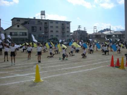6年生のフラッグパフォーマンスは、みんなの気持ちがしっかりと揃っていました。
