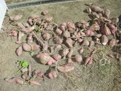 10月26日(水)、愛育会のみなさんのご指導のもと、1・2年生が、いも堀りをしました。「こんなに大きなおいもさんがとれたよ。」などと歓声を上げながら、いも堀りを楽しんでいました。たくさん収穫することができました。