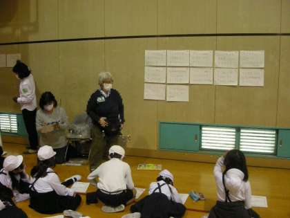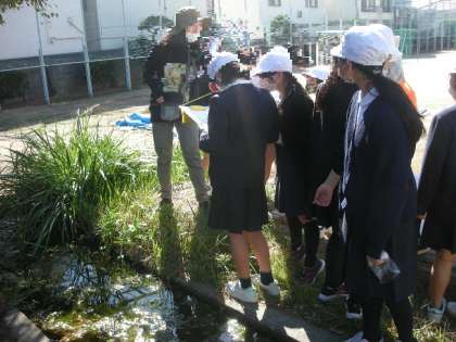 自然豊かな川北小学校には、たくさんの生きものがいます。「これは何ですか?」など、4年生は積極的に質問をしていました。