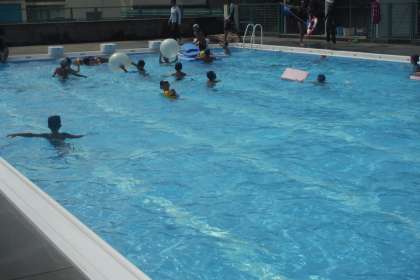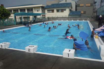 今日が、夏季休業中最後のプール水泳です。朝から猛暑のなか、大勢の子どもたちが来てくれました。