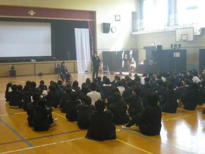 2月28日(火)3・4限、5・6年生対象に、車いすダンスを通じて〜仲間とは?〜(文化庁ー文化芸術による子供育成推進事業・ユニバーサル公演事業)を実施しました。