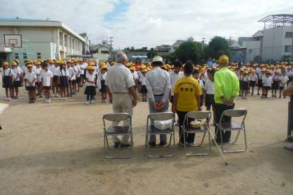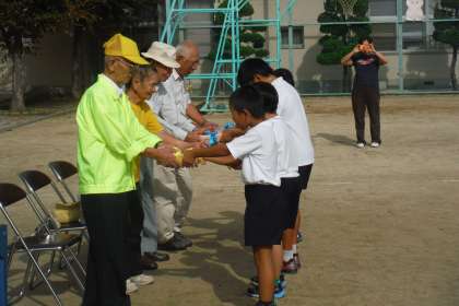 児童集会にて、地域の老人会の皆さんに登下校の見守りなど、学校教育に対する様々な支援への感謝の気持ちとして、お礼のお手紙をお渡ししました。