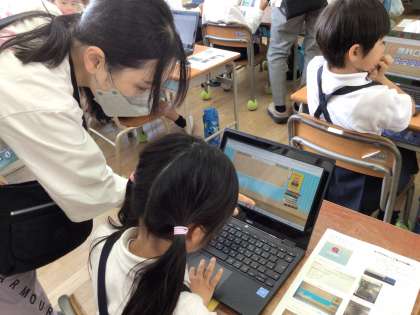 今日は、全児童に貸与されているタブレットパソコン(本校はクロームブック)に、初めてログインしました。デジタルネイティブと言われる世代だけあって、どの子も先生の指示をよく聞いて、スムーズに操作できていました。