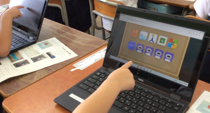 学校だけにあるアイコンや、操作画面がデスクトップに出てきて、「わー、なんかおもしろいのが出てきた!」と歓声をあげていました。