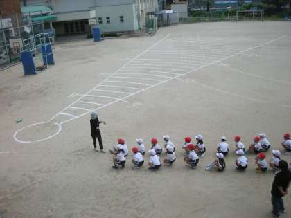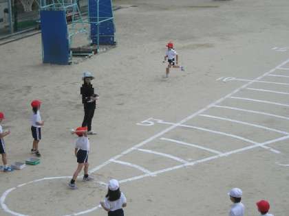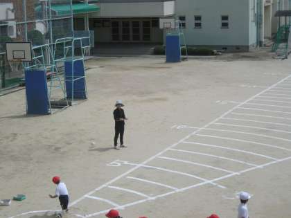 1年生がソフトボール投げを行っていました。最初は、少しとまどった様子でしたが、それぞれが役割を果たし、スムーズに実施することができていました。自己ベストをめざして、がんばりましょう。