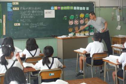 4年生算数科で行われている習熟度別少人数授業の様子です。子どもたちは、普段の一斉授業に比べ先生との距離が縮まって授業に集中しやすいようでした。