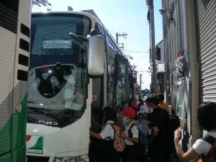 8:55、多数の保護者の見送りの中、バスに乗り込みました。