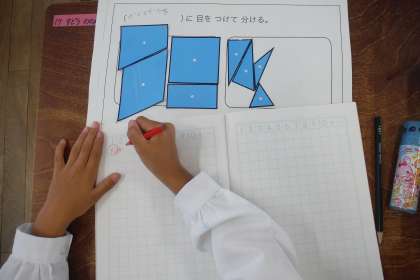 2年生「こんな図作れるかな」、3生「ひっ算」の算数科の授業の様子です。