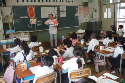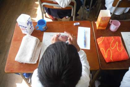 2・3時間目に、2年生対象に歯磨き指導をしていただきました。今日から、みんな歯磨き名人!