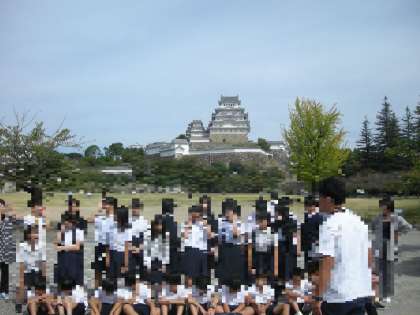 国宝「姫路城」を背景に、クラス写真を撮影しました。
