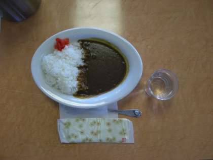 11:30、レストランで、昼食を食べました。メニューは、「カレーライス」でした。「いただきます。」