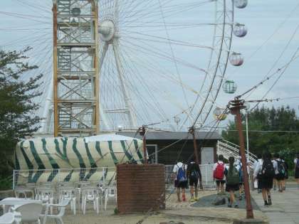 9:45,鷲羽山ハイランドに到着。クラス写真撮影の後、楽しみにしていた鷲羽山ハイランドでのグループ活動が始まりました。各グループは、お目当てのアトラクションの場所に、一斉に走って行きました。みんな元気いっぱいです。