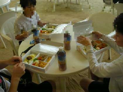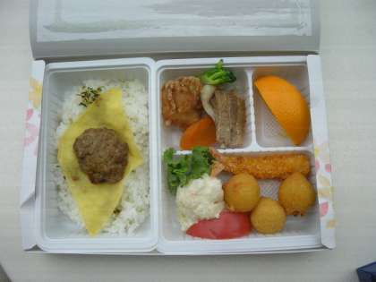 11:45、昼食は、お弁当です。子どもたちの好きそうなメニューが並びました。