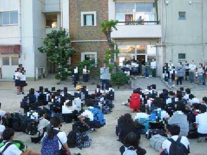 13:55、龍野西SA、15:10、西宮名塩SAで、トイレ休憩をとり、16:15、学校へ到着し、帰校式を行いました。