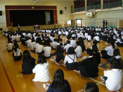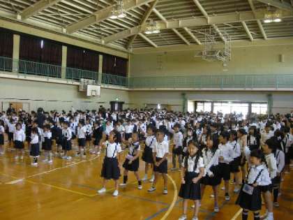 10月12日(木)8:30〜、児童集会で、「運動会の歌」・「校歌」の歌唱練習をしました。大きな歌声が、講堂に響いていました。