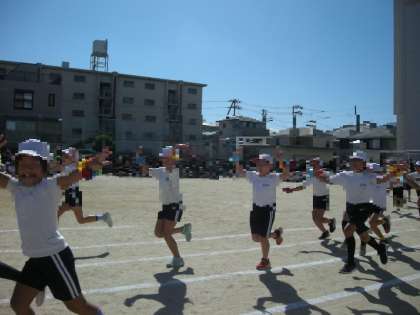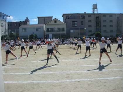 演技をやり終え、にこやかにトラックを1周し退場する3年生には、笑顔があふれていました。素敵な団体演技でした。