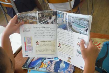 5年生の社会科の授業風景です。内容は、「働く人や環境のために工場ではどのような工夫をしているだろう」です。始めに工場の様子を映像で見て、教科書の内容で深めていきました。