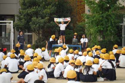 今朝の児童集会は、文字を並べ替えてできる言葉をあてるクイズでした。