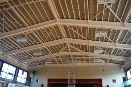 9月から始まった講堂天井取り外し工事が、ようやく終了しました。あとは、検査が終われば、使用可能になります。もうしばらくお待ちください。