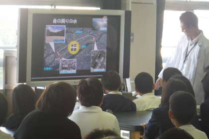 本日、授業参観の2〜3時間目に「水質を調べる」出前授業を行っていただきました。校内の様々なところの水や醤油・洗い物後の水等いろいろな水を取って、汚れの度合いを観察しました。