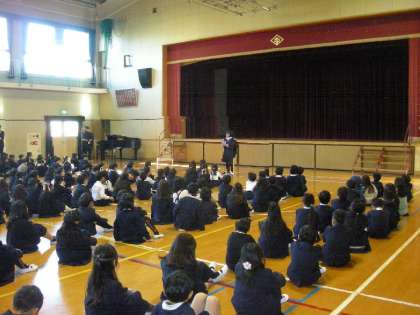 その後、生活指導部長の話、5年代表児童の発表、校歌斉唱がありました。おちついた雰囲気の中、3学期が始まりました。