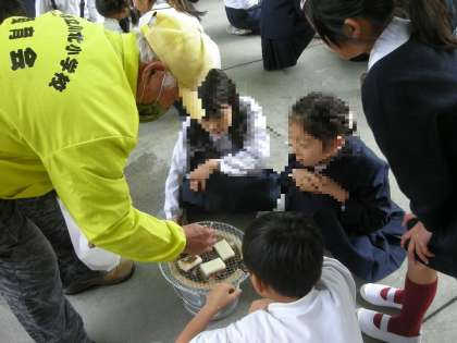 マッチを使って火起こしをし、七輪でお餅を焼いて食べました。「火を起こすのが楽しかった。」、「お餅が美味しかった!!」など、感想を言っていました。