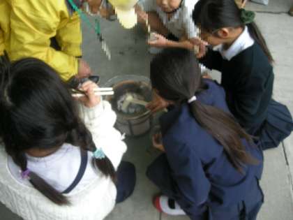 2月22日(木)2・3限、3年生が、愛育会のみなさまの指導のもと、七輪体験をしました。