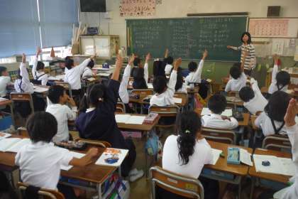 お寿司屋さんで、一枚のお皿に二つお寿司がのっていて、そのお皿が2、3、4…枚と増えていくという内容で、九九の計算「2の段」を学習していました。