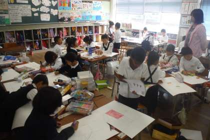 算数科「かたちをうつしてえをかきましょう」で、子どもたちは、自分たちがお家から持ってきた空き箱などを、思い思いに手に取って書き写していました。とても楽しかったようで、ある子は「来週も算数が楽しみ」と言っていました。