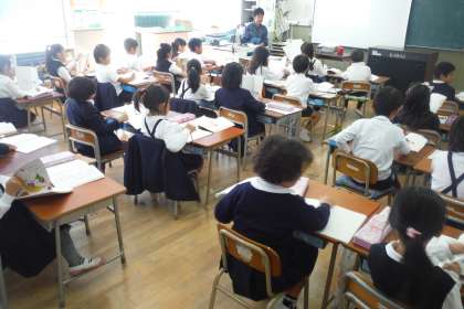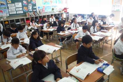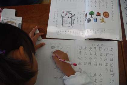 国語科「よう日と 日づけを おぼえよう」の学習です。一日…ついたち、二日…ふつか、三日…みっかというように、漢字の読み方が難しいものを皆で読んで覚えていきました。
