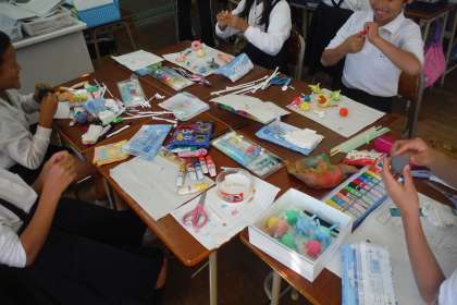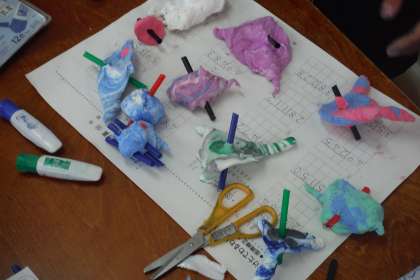 先週、4年生が「宇宙空間」模型の下絵を考えているところをアップしていました。今日は、宇宙空間にある星を制作していました。