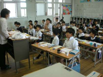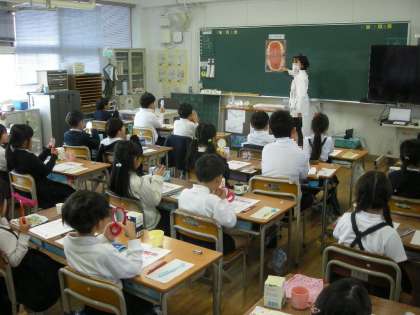 歯科衛生士の方から、むし歯ができるしくみや正しい歯みがきの仕方などを学びました。全員が熱心に取り組むことができていました。