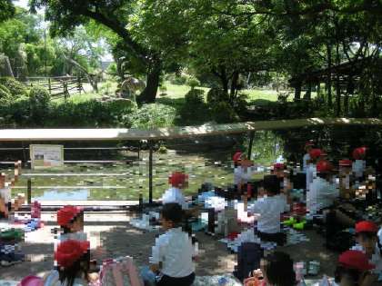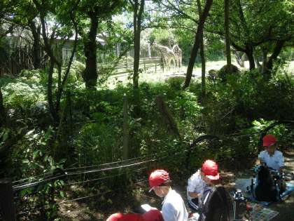 キリンの見える木陰広場で、「手作りのお弁当」を見せ合いながら、みんなで楽しく昼食を食べました。