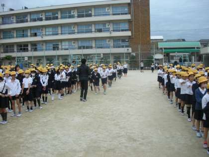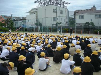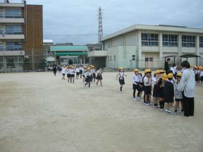 すべての児童が、素早く真剣に訓練に取り組んでいました。校長先生からは、避難行動、避難経路、避難集合場所等についてお話がありました。