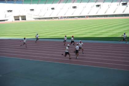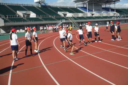 本日、6年生は長居陸上競技場で、スポーツ交歓会に参加しました。午前中は、サッカーとドッヂボール、午後からは100m・400mリレー・800m走を一生懸命頑張っていました。熱のこもった応援もしてくれました。開会式での選手宣誓も川北の児童2人がしっかりやり遂げてくれました。