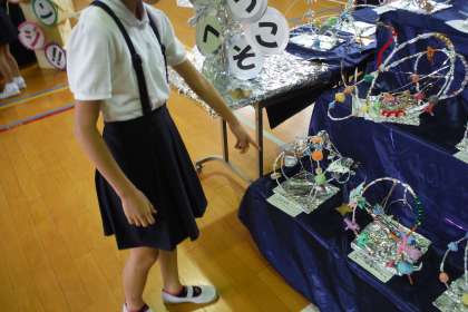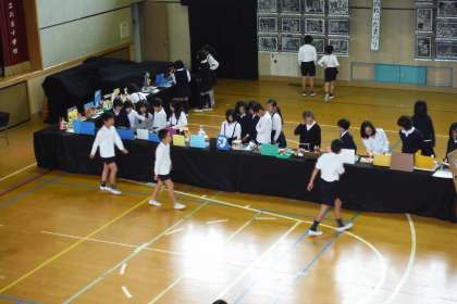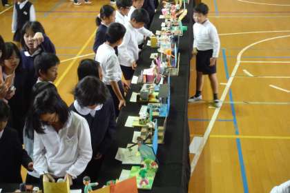 昨日から作品展が始まり、順次、各学年ごとに見学をしています。4年生の見学では、6年生の作品に興味をしめしている子どもたちが数多くみられました。