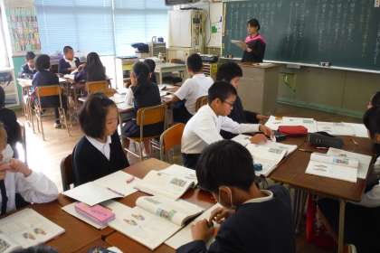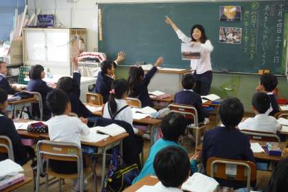 明け方まで降っていた雨はすっかり止んで、保護者の皆さんが参観に来られるなか、土曜授業と作品展を行っています。
