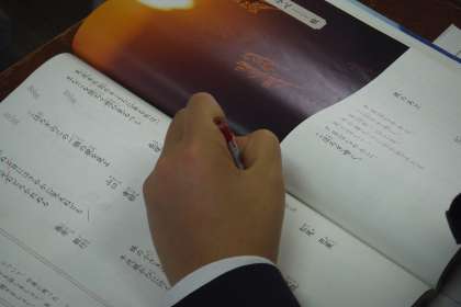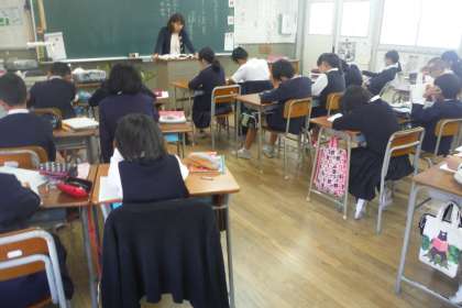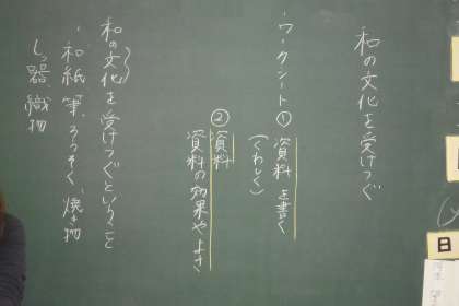 「和の文化を受けつぐ」の学習です。季語、五・七・五などを確認しながら教科書にでてくる句を詠みこんでいました。