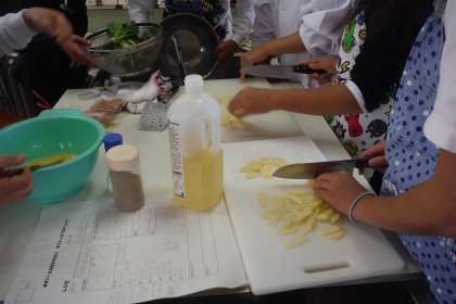 各班で独自のレシピに沿って調理をしました。さて、出来上がりは?