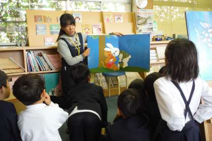 毎週金曜日に来ていただいています図書館補助員さんが、1年生の子どもたちに読み聞かせをしてくださいました。みんなとても真剣に耳を傾けていました。