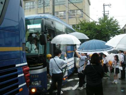 保護者のみなさま、雨の中、早朝よりのお見送り、ありがとうございました。「行ってきます!」