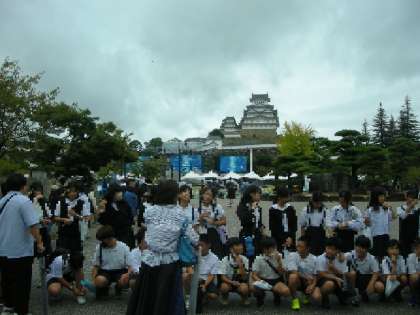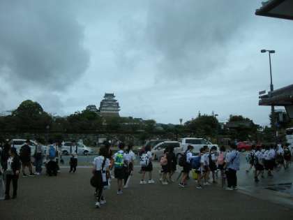 12:30、雨が一時止んだので、姫路城内へ移動し、学級写真撮影を行いました。