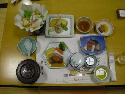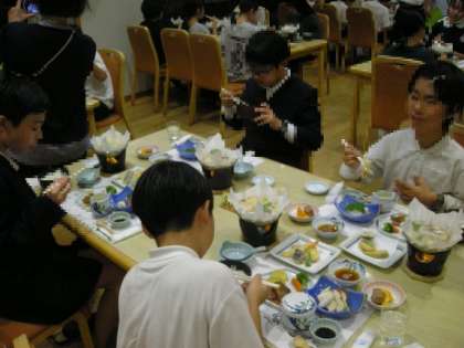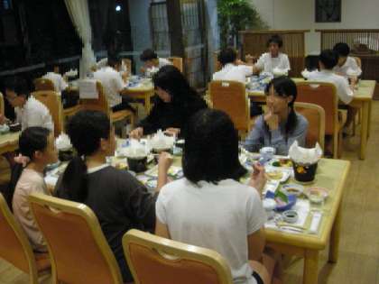 18:00、夕食の時間です。食事係の「いただきます。」を合図に食事が始まりました。豪華メニューに、子どもたちもうれしそうに食べていました。