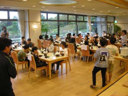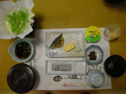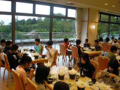 7:15、食事係の「いただきます。」を合図に、朝食が始まりました。朝食も美味しそうなメニューが並びました。