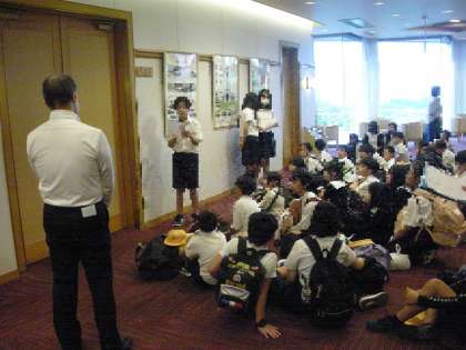 8:30、部屋の片づけ、着替え、荷物整理を終え、閉舎式を行いました。「1泊2日、お世話になり、ありがとうがございました。」