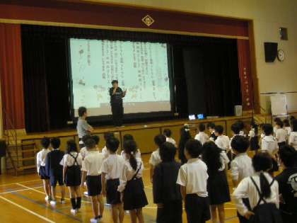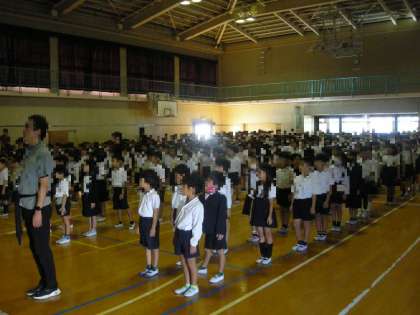10月10日(木)8:30〜、児童集会で、「行進練習」、「運動会の歌」・「校歌」の歌唱練習をしました。明るく元気な歌声が、講堂に響いていました。